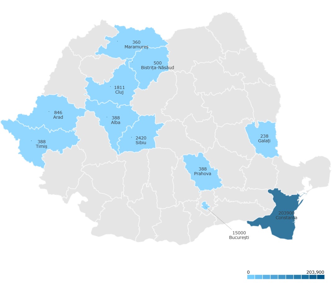 Din punct de vedere geografic, județul Constanța se detașează clar, concentrând aproape 204.000 mp de șantiere, ceea ce îl transformă în principalul pol de investiții din această perioadă. Proiectele de energie și utilități din zonă generează o cerere consistentă pentru instalații electrice, sisteme energetice și infrastructură tehnică, într-o piață extrem de competitivă, unde experiența și capacitatea de livrare sunt decisive.